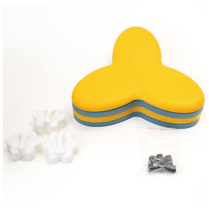 3層に分かれたコンパートメントに全部で9つのフードボウルを配置。ワンちゃんが鼻先や前足でパーツを回転させるとおやつが食べられるユニークな知育おもちゃ♪