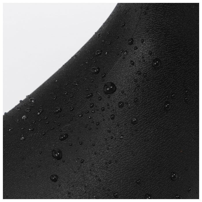 ・底・甲・筒の下部は合成樹脂を採用。高密度のライクラ素材で水を弾き、微孔加工発泡ゴム素材で防水性と通気性を両立。