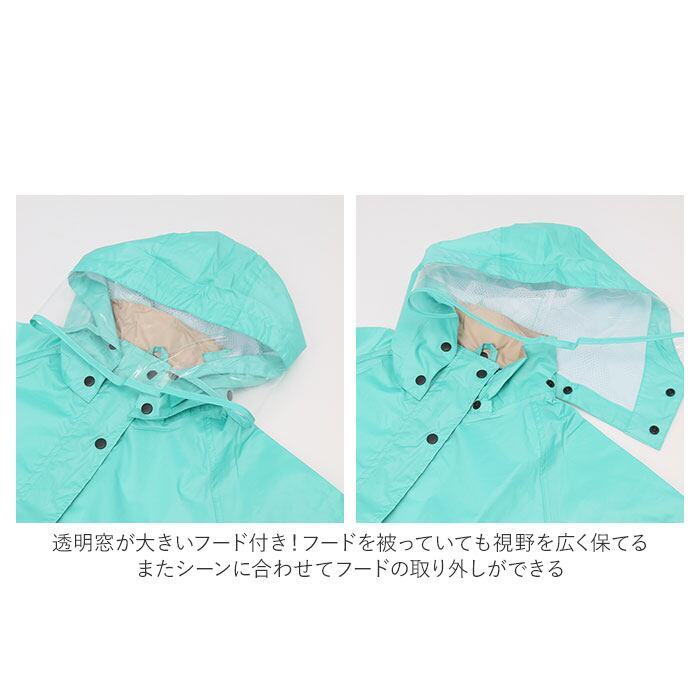 ・透明窓が大きいフード付き!フードを被っていても視野を広く保てる。またシーンに合わせてフードの取り外しができる。
