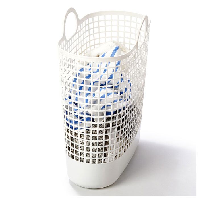 ・バスケットの側面は通気性を保つために格子状に仕上げてあるため、濡れた洗濯物をベランダまで運ぶときにも安心。