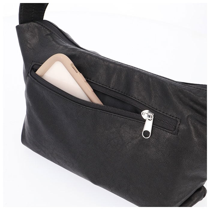 ・バッグ背面のファスナーポケットからは、スマホやパスケースのような出番の多い小物たちをサッと取り出して、いつでもスマートに!