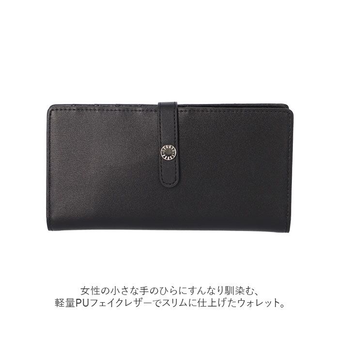 ・女性の小さな手のひらにすんなり馴染む、軽量PUフェイクレザーでスリムに仕上げたウォレット。