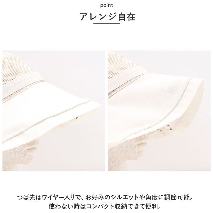 ・つば先はワイヤー入りで、お好みのシルエットや角度に調節可能。使わない時はコンパクト収納できて便利。