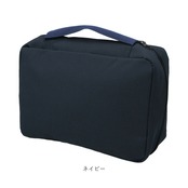 ・ポーチ下部には、収納した小物がひと目でわかる「ファスナー付きのメッシュポケット」。ハンドタオルや化粧水ボトル等がたっぷり入り、化粧ポーチがわりにちょうどいいスペース。