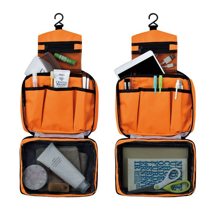 ・洗面用品やコスメなどの小物を整理して収納できる、コンパクトなポーチ。フック付きなので、旅先のホテルや旅館の洗面台に吊るせば、必要な小物が取り出しやすい!