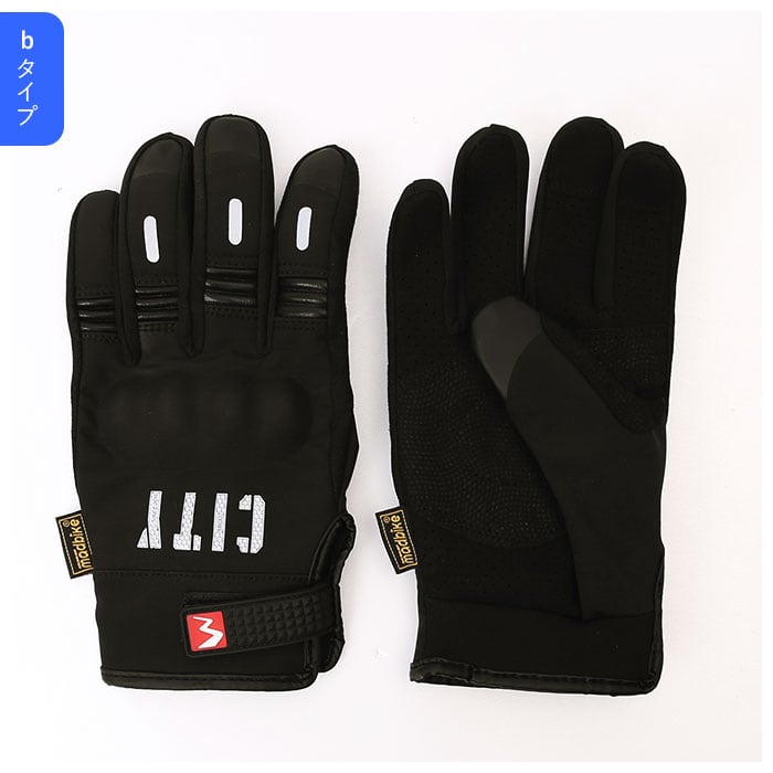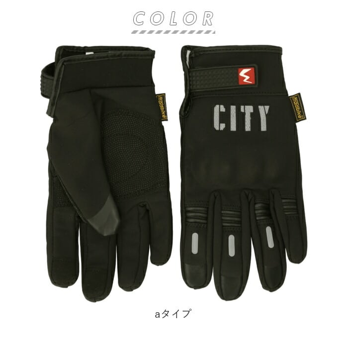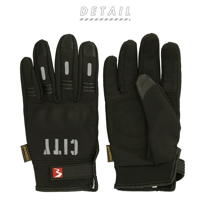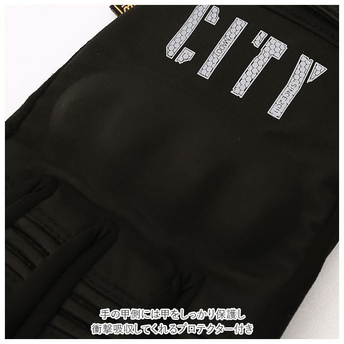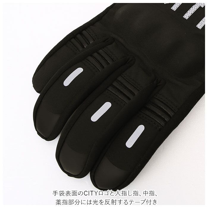 ・手袋表面のCITYロゴと人指し指、中指、薬指部分には光を反射するテープ付きだから夜間の使用にも最適。