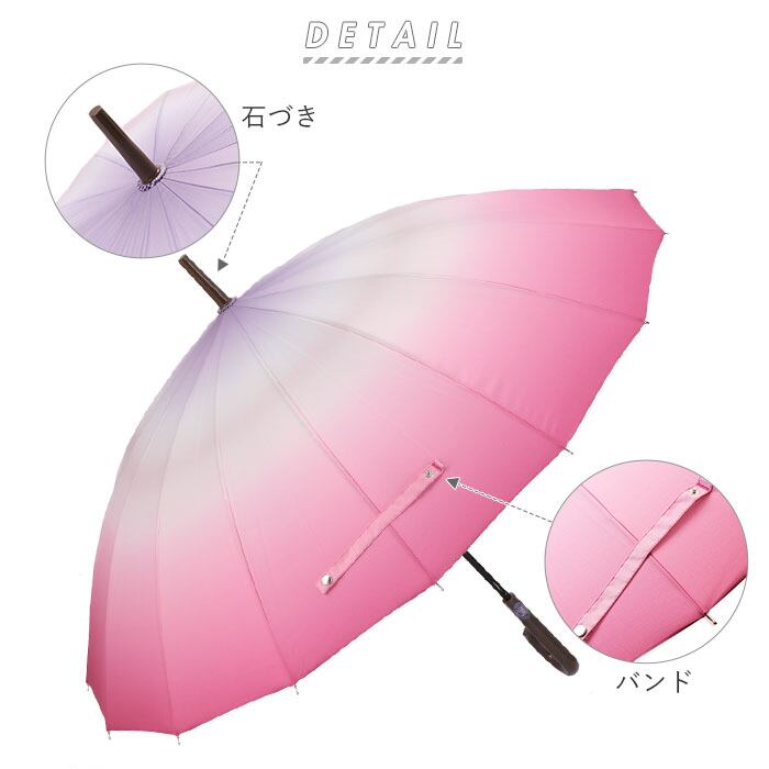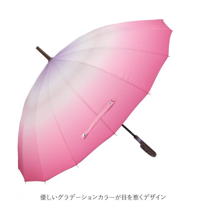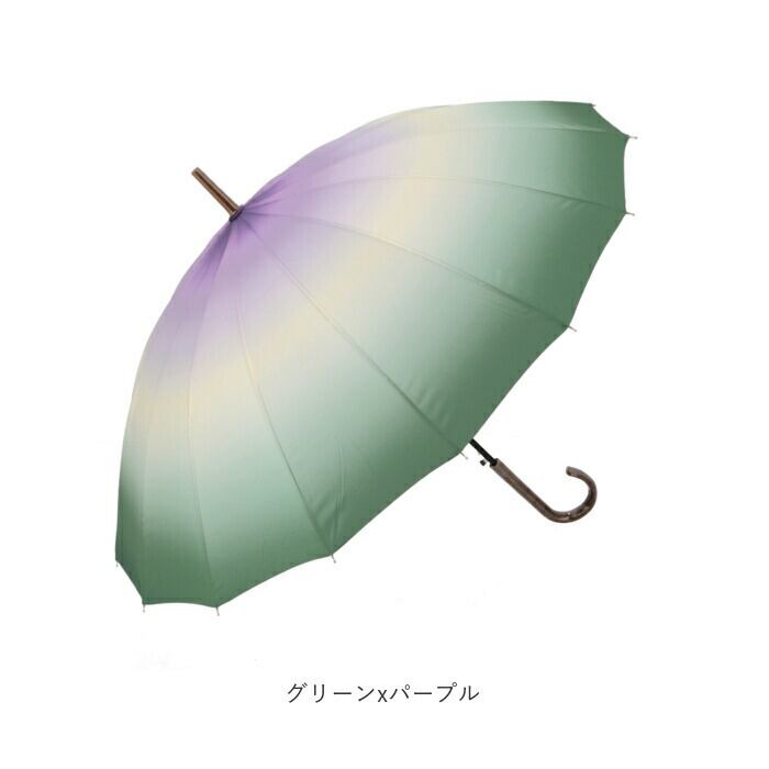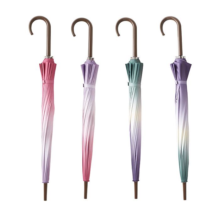 ・滲むような色の変化が美しい・・・。優しいグラデーションカラーが目を惹く、16本骨ロングアンブレラ(親骨55cmタイプ)が新登場。