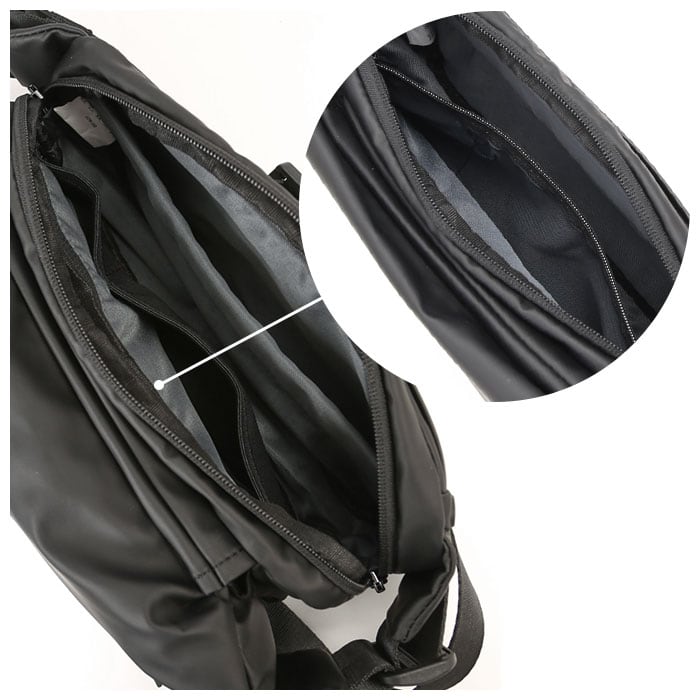 ・メイン収納部はオープンポケット×3、ファスナー付きポケット×1を装備。コンパクトなのに収納力抜群。