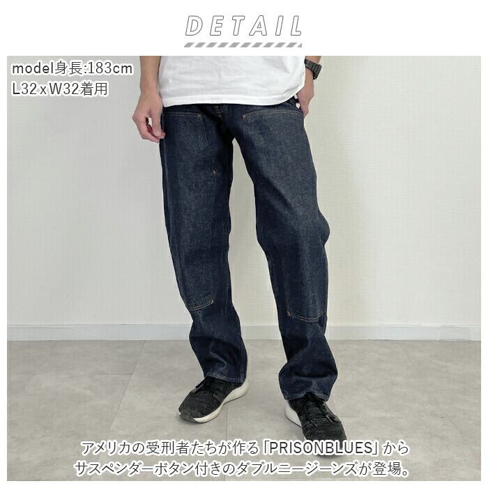 PRISONBLUES ダブルニージーンズwithサスペンダーボタン