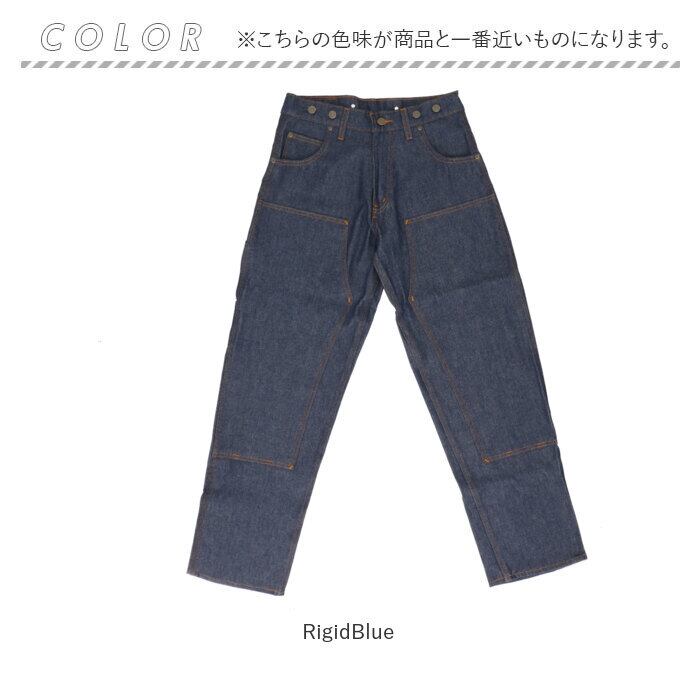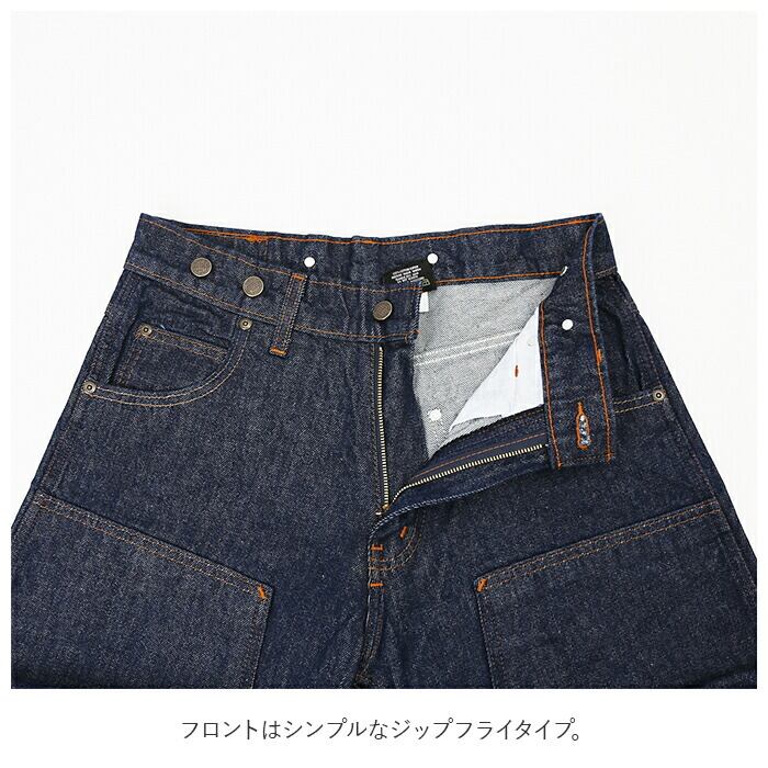 ・ヘビーな生地感のデニムはしっかりと縫製され、膝部分には当て布をし、生地を二重に補強したダブルニー仕様♪クタクタになるまで穿き倒せるタフな作りに。