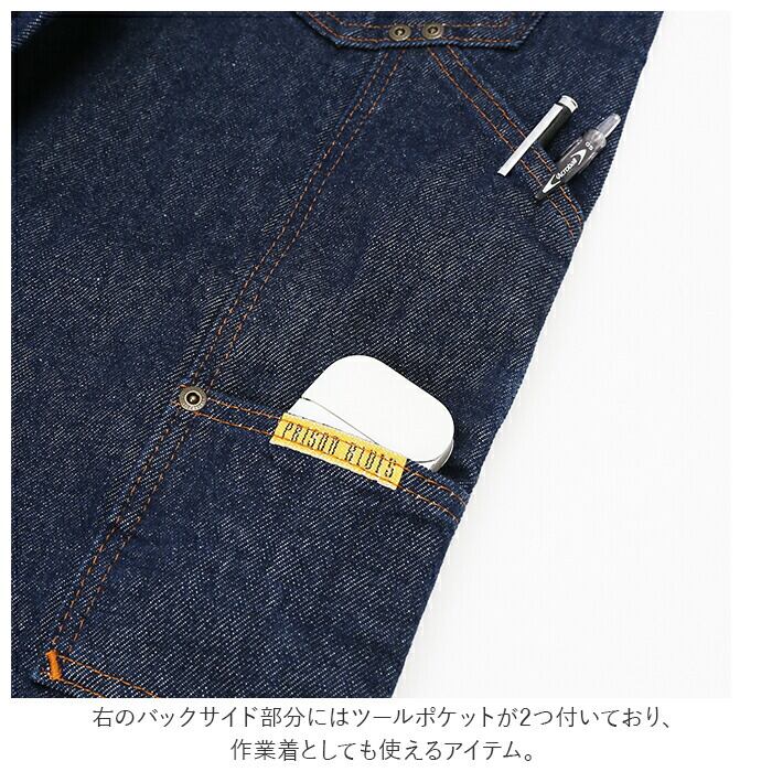 ・アメリカの受刑者たちが作る「PRISONBLUES」からサスペンダーボタン付きのダブルニージーンズが登場。