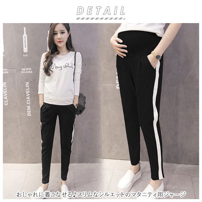 マタニティ ジャージ 通販 パンツ ゆったり マタニティジャージ レギンス スウェット ジョガーパンツ ズボン ラインパンツ 動きやすい アジャスター 調節 大きいサイズ サイドライン 親子コーデ ペアルック おしゃれ 運動会 ヨガ
