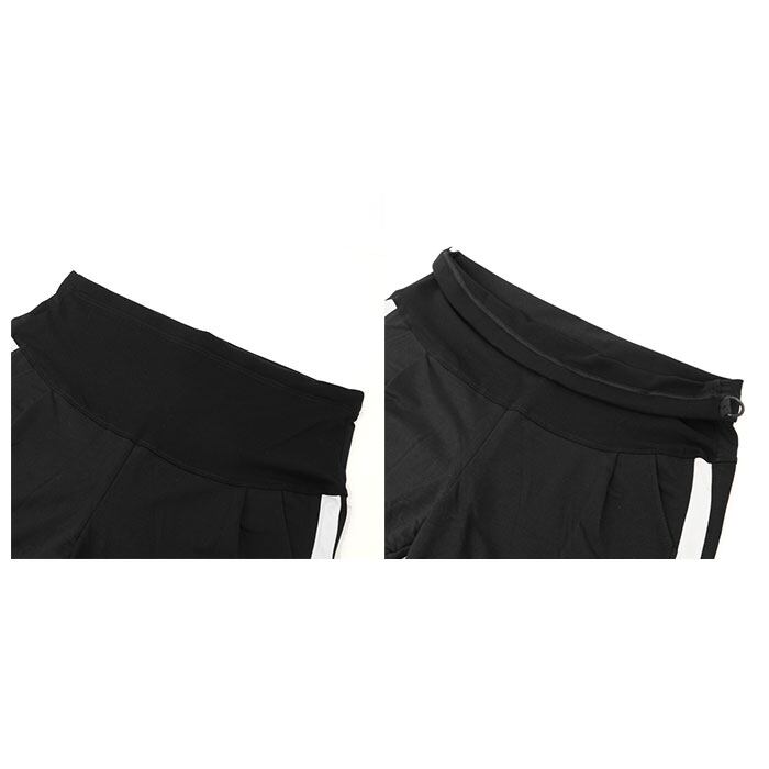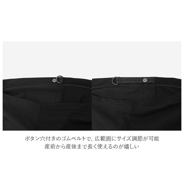 ・ボタン穴付きのゴムベルトで、広範囲にサイズ調節が可能。産前から産後まで長く使えるのが嬉しい。