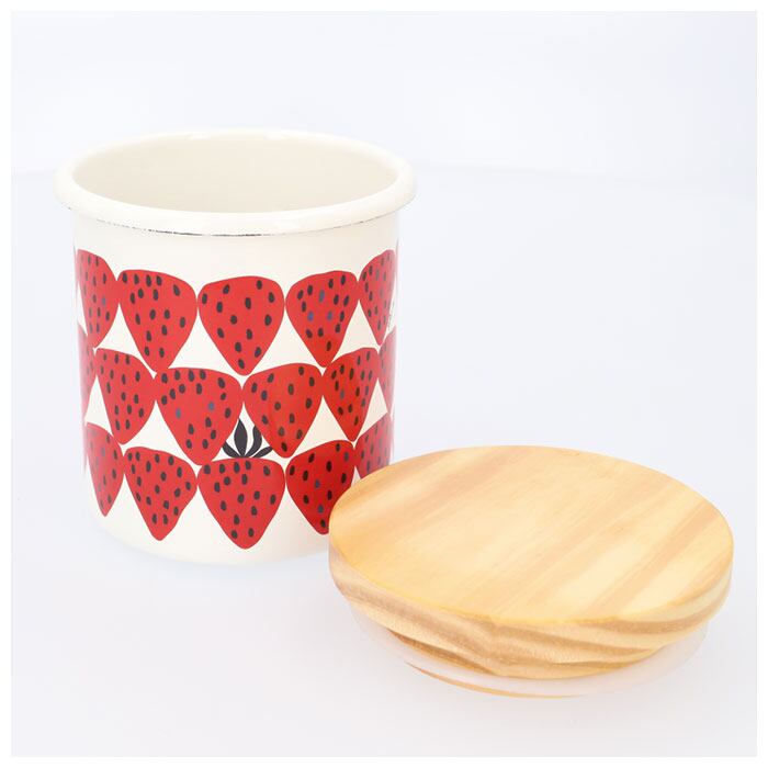 ・ポップでキュートなデザインのホーローキャニスタ♪
