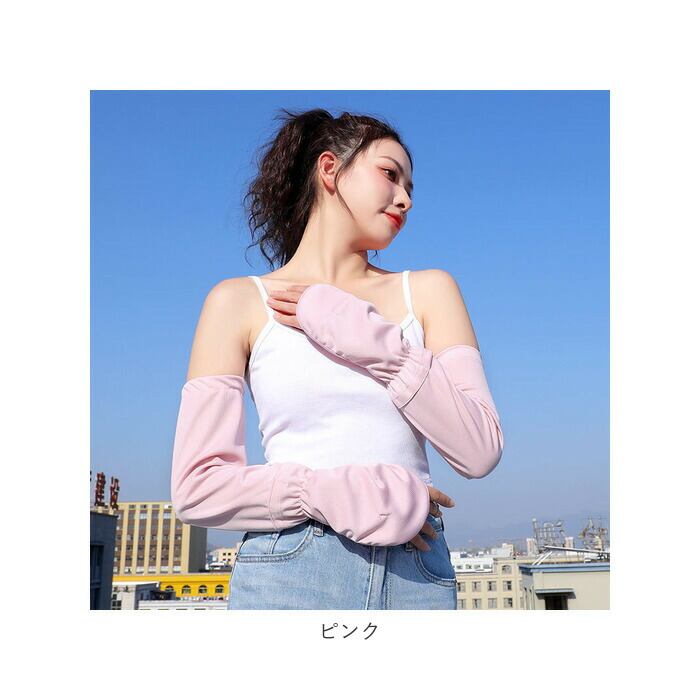 ・汗ばむ季節に、さらりとした着用感で快適に♪内側のループに中指を引っかければ指先までしっかりカバー。指先の日焼け対策にも◎