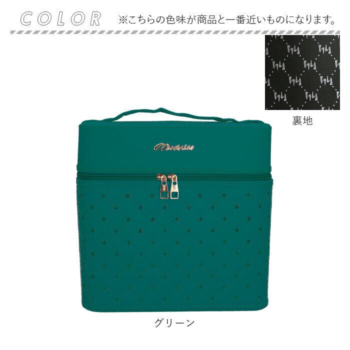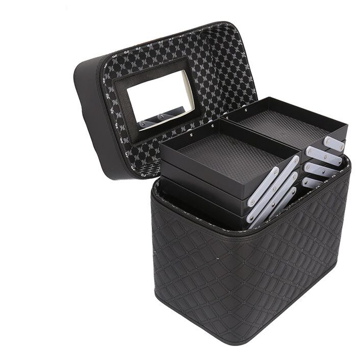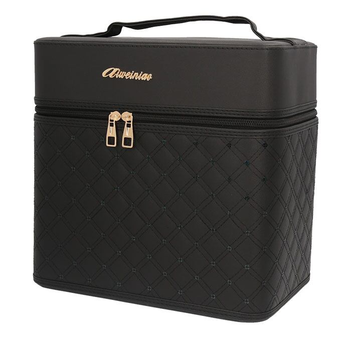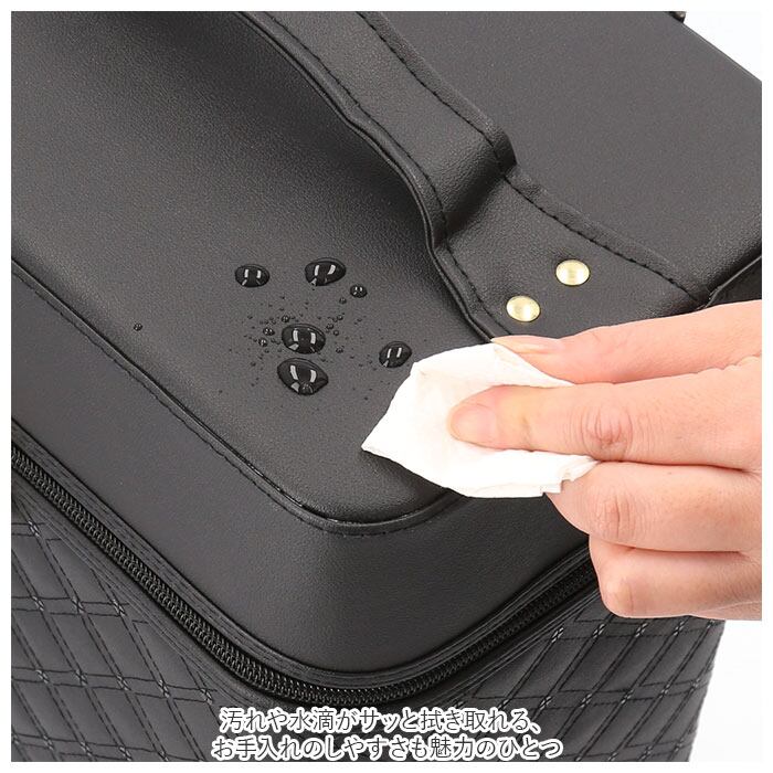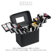 ・左右に立体的に広がる、6段トレイ付き♪キルティングデザインが大人可愛い、トレイ付きメイクボックス。