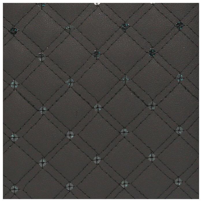 ・ダイヤ柄のキルティングステッチに、煌めくスパンコールがエレガントなデザイン。汚れや水滴がサッと拭き取れる、お手入れのしやすさも魅力のひとつ。