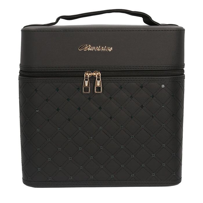 ・メイクアップアーティスト顔負けのプロ仕様!ダブルファスナーを開放すると、両サイド各3段(全6段)のコスメ用トレーが左右にスライドオープンする収納力抜群のつくり。