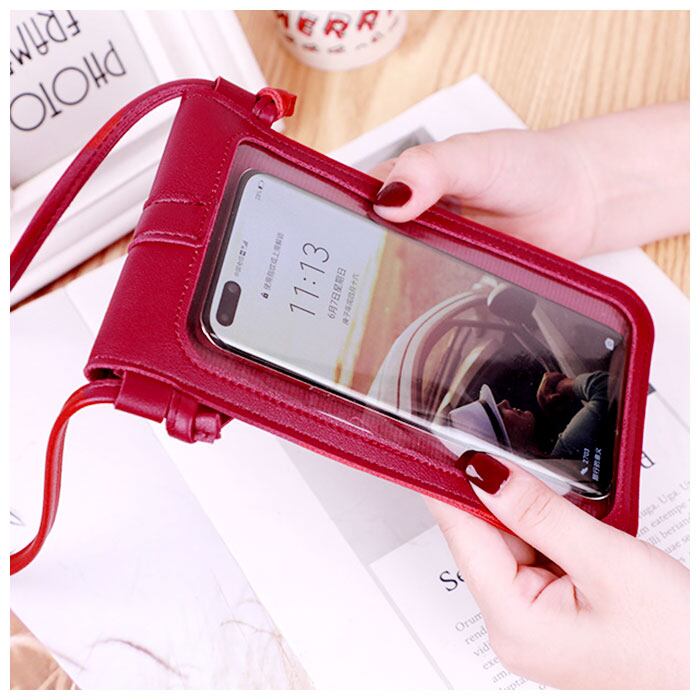 ・背面のスマホを入れるポケットはクリア窓仕様!入れたままスマホ操作ができて便利◎