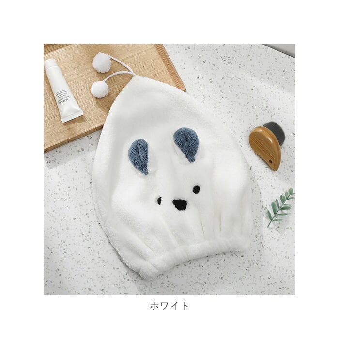 ・お風呂上りはふわふわアニマルに包まれて、気持ちよくヘアドライ!ちょこんと付いたお耳が可愛いアニマルタオルキャップ。