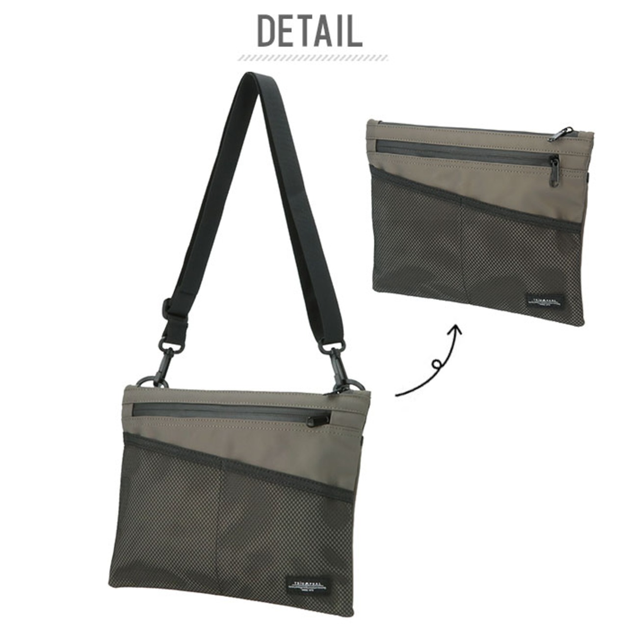 ・ストラップを取り外せばバッグインバッグやクラッチバッグ・ドキュメントバッグの様に使用する事ができる優れものアイテム!
