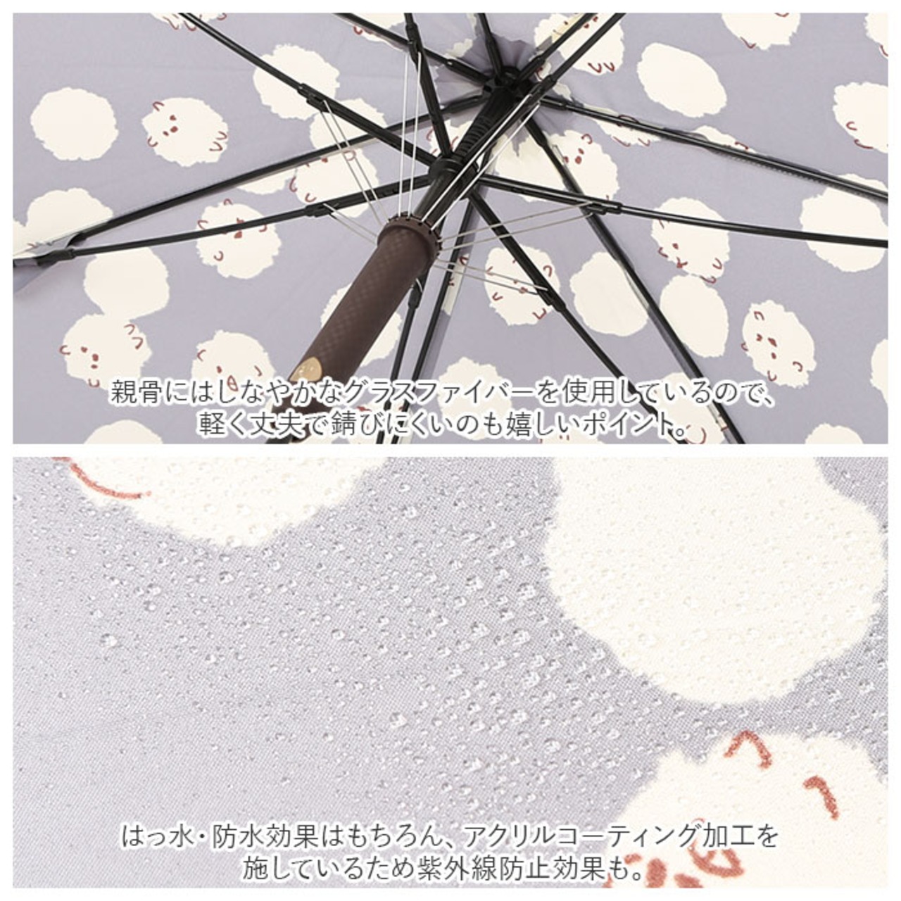 ・親骨にはしなやかなグラスファイバーを使用しているので、軽く丈夫で錆びにくいのも嬉しいポイント。