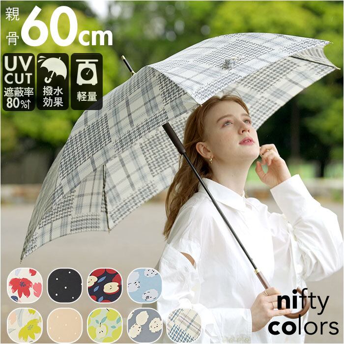 長傘 レディース 軽量 丈夫 通販 雨傘 傘 60cm ブランド nifty-colorsニフティカラーズ ジャンプ傘 60センチ ワンタッチ 晴雨兼用 UVカット かわいい おしゃれ 大きめ グラスファイバー 撥水 はっ水 紫外線防止