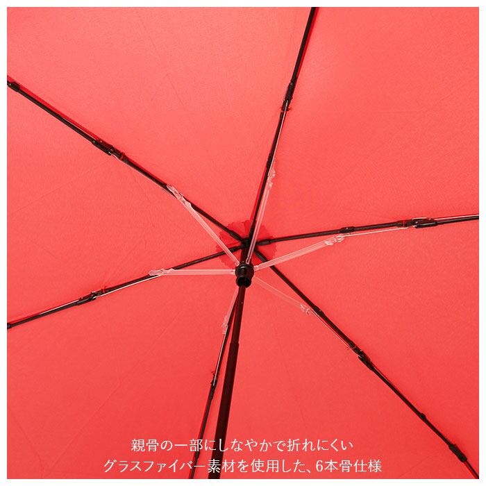 ・親骨の一部にしなやかで折れにくいグラスファイバー素材を使用した、6本骨仕様。