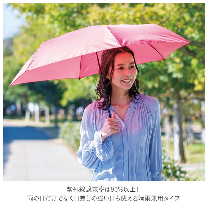 ・紫外線遮蔽率は90%以上!雨の日だけでなく日差しの強い日も使える晴雨兼用タイプ。