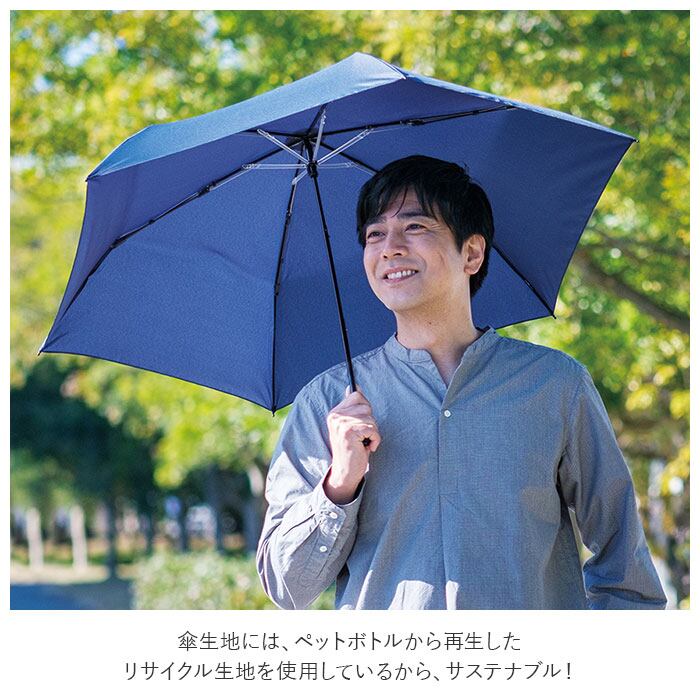 ・傘生地には、ペットボトルから再生したリサイクル生地を使用しているから、サステナブル!