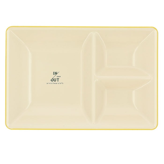 ・仕切りがあるので料理が混ざることなく、程よい深さでソースなどもこぼれにくい仕様。落としても割れにくく、アウトドアシーンでも活躍!