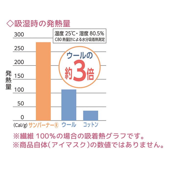 ※肌が温まると一時的に目もとが赤くなることやかゆみを感じることがあります。本品の中材に吸湿発熱繊維を使用しておりますが、本品自体が発熱することはありません。
