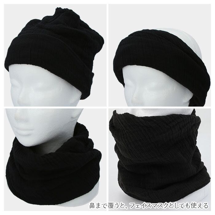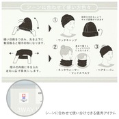 ・ワッチキャップとしてだけでなく、ネックウォーマー、ヘアターバンとして使える3way仕様♪鼻まで覆うと、フェイスマスクとしても使える。
