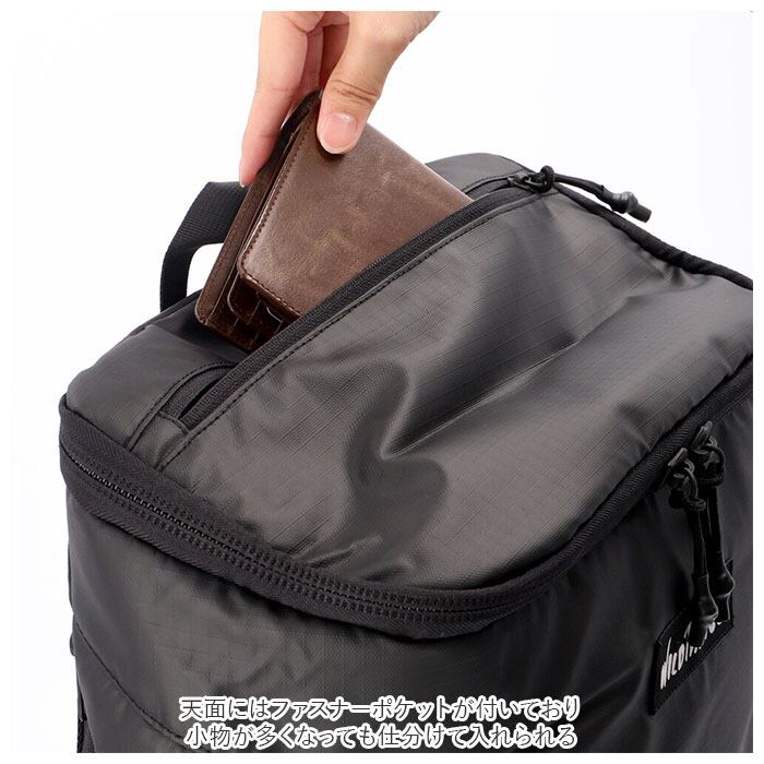 ・天面にはファスナーポケットが付いており小物が多くなっても仕分けて入れられる。