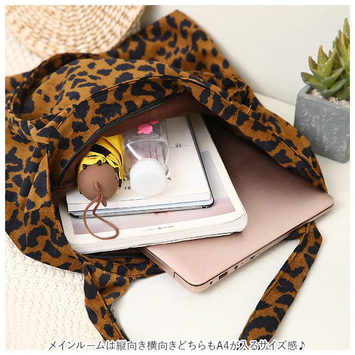 トートバッグ レディース 大きめ 通販 ショルダーバッグ ショルダー 肩掛け ヒョウ柄 柔らかい ファスナー付き 大容量 コーデュロイ レオパード シンプル バッグ 鞄 おしゃれ 旅行 お出かけ