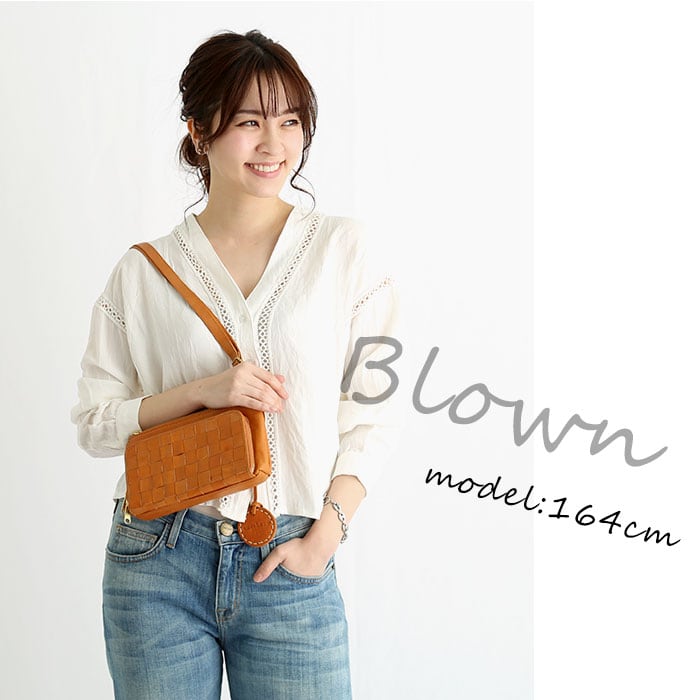 ・厳選されたナチュラルレザー(牛革)を使用。フロントのファスナーポーチ部分に丁寧に編み込んだメッシュレザー生地を使用した、編み込みお財布バッグ。