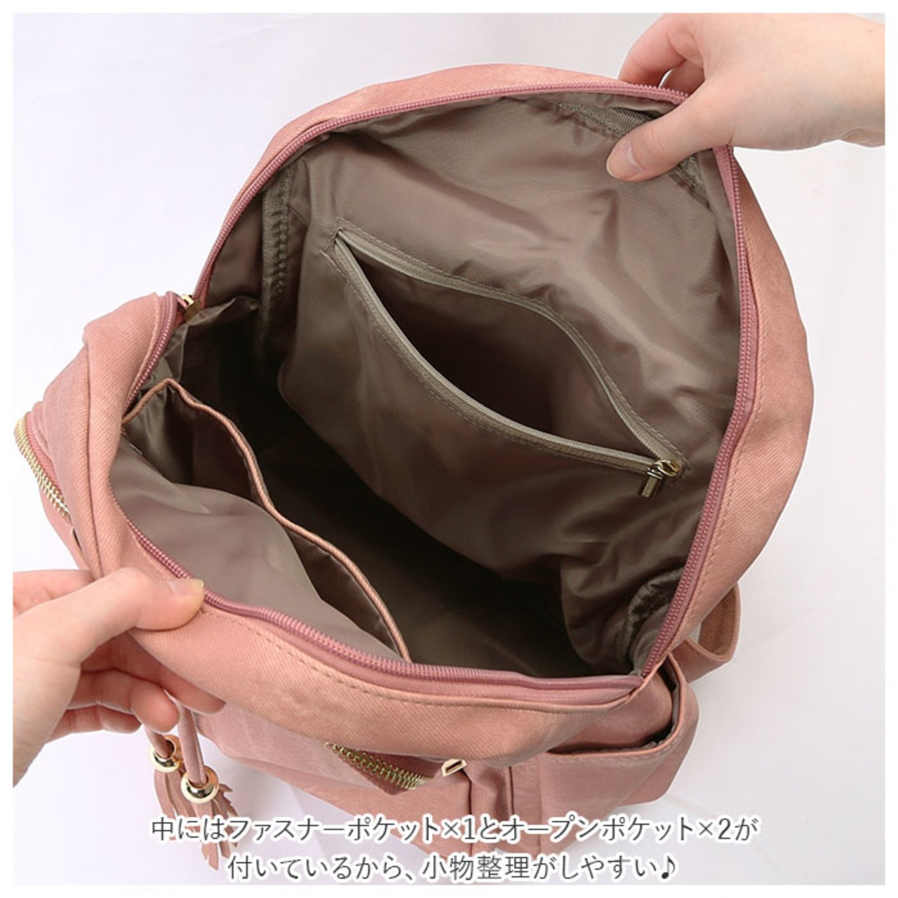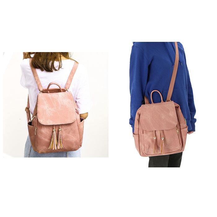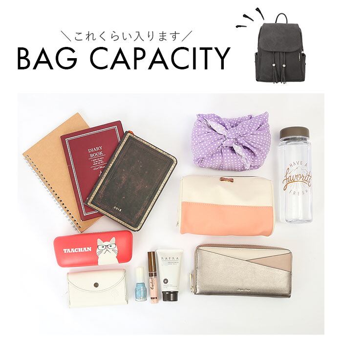2本のタッセルが印象的なアクセントになった大人可愛いリュックが登場。