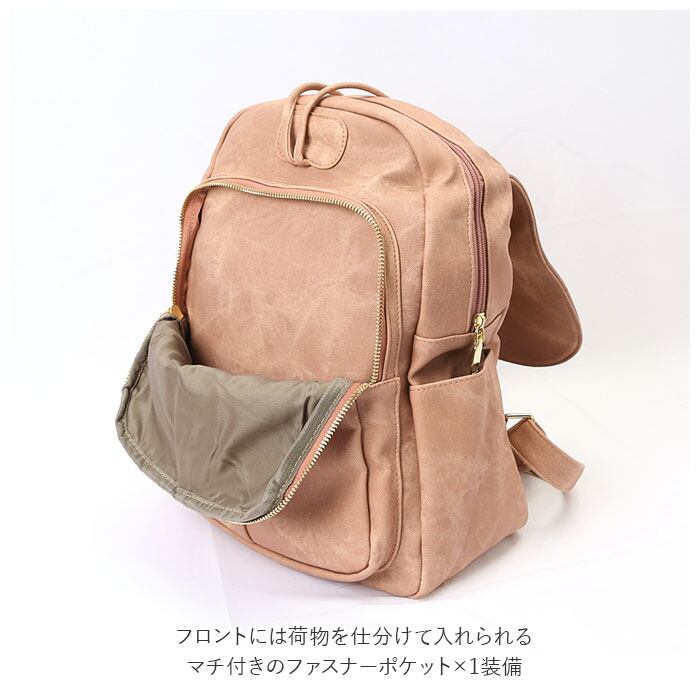 ・フロントにはさらに荷物を仕分けて入れられるマチ付きのファスナーポケット×1装備。スケジュール帳や文庫本を入れやすい大きさ。