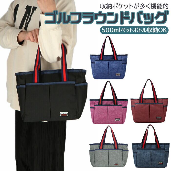 ラウンドバッグ ゴルフ 通販 トートバッグ セルフプレー カートバッグ ランチバッグ ボトル収納 ゴルフ用品 レディース メンズ 収納 ポケット レッド ピンク ブルー ネイビー ブラック グレー