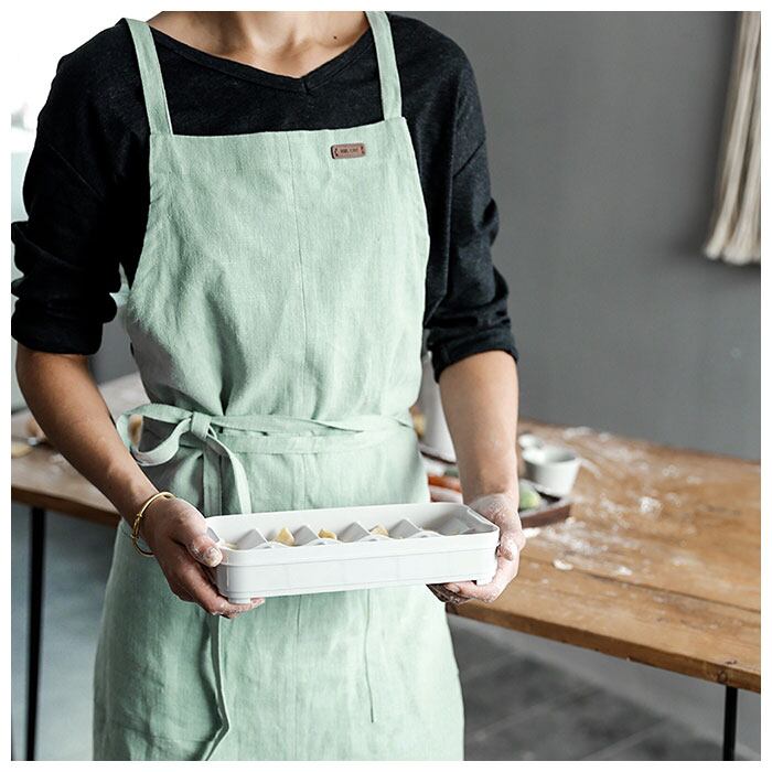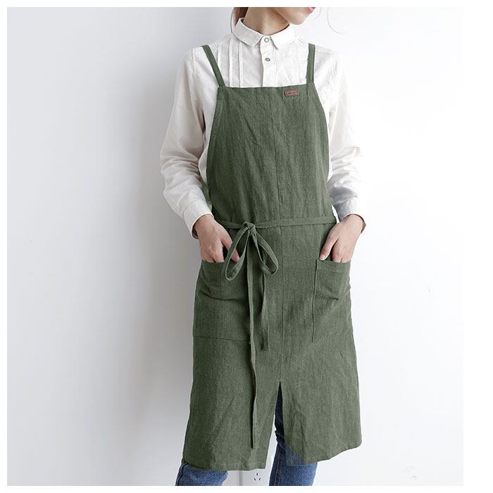・乾きが早いコットンリネンが肌に良く馴染む下開きエプロンが登場。