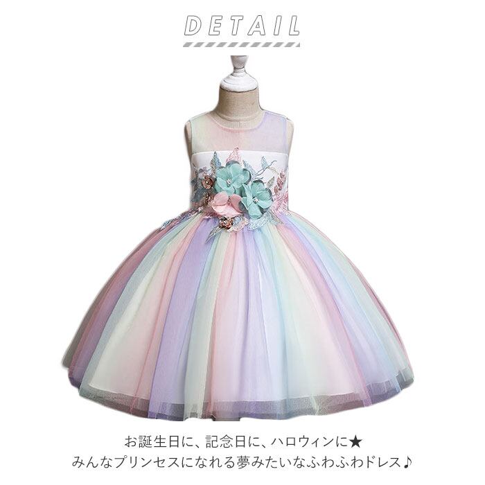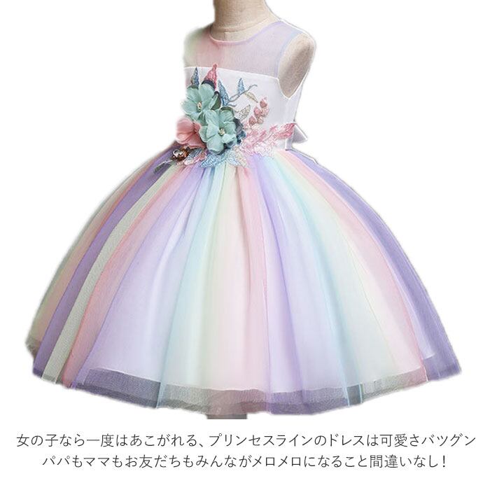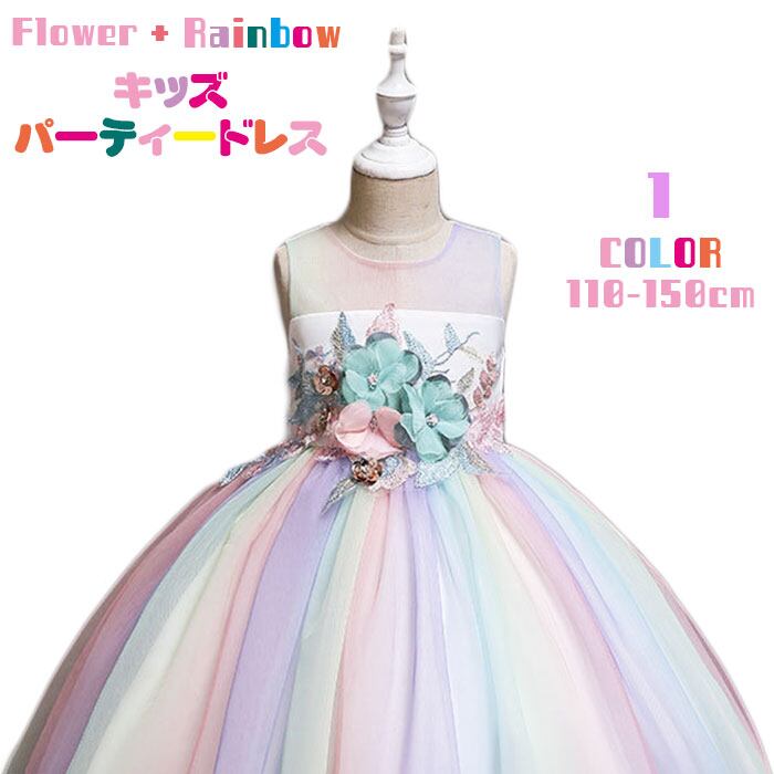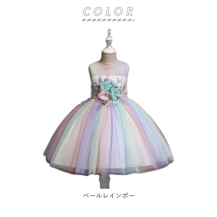 キッズ フラワー レインボー チュールドレス
