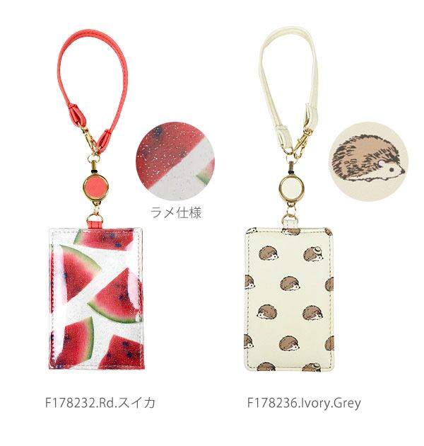 カバンに取付けられるストラップ付きパスケース。おなじみのブブリンの他にフルーツ柄、ハリネズミ柄も登場。大人可愛いデザインがアクセント☆リールを伸ばせば、改札もスマートに通過♪