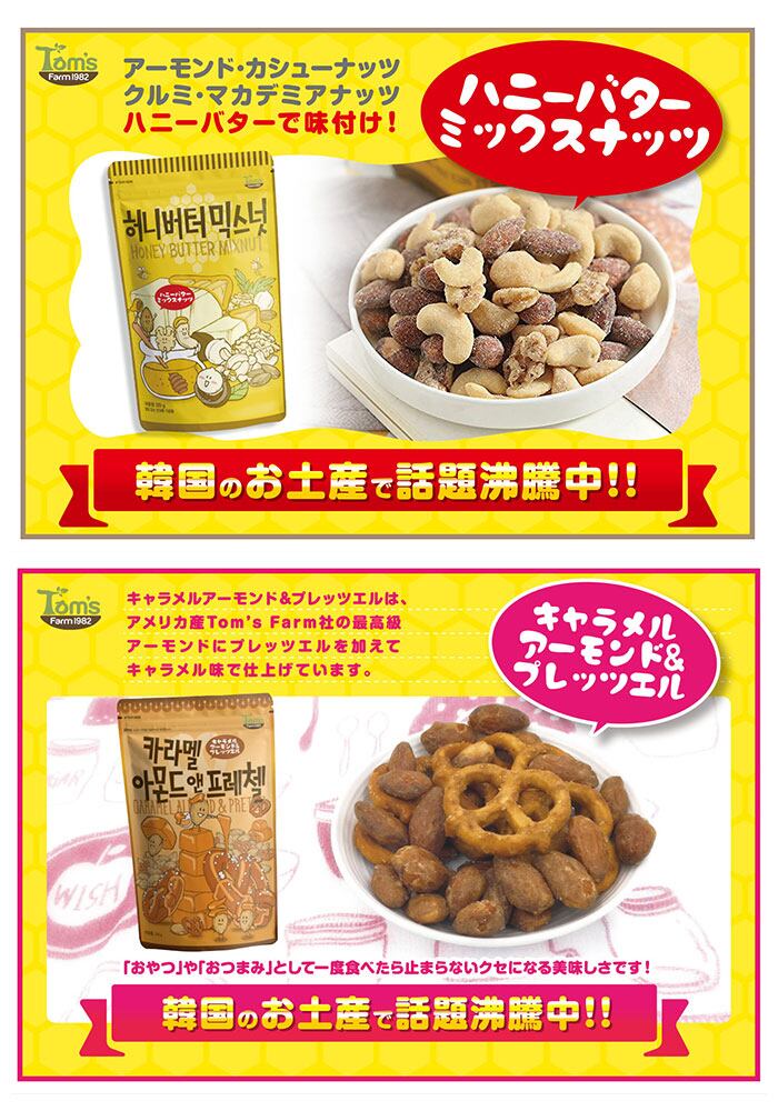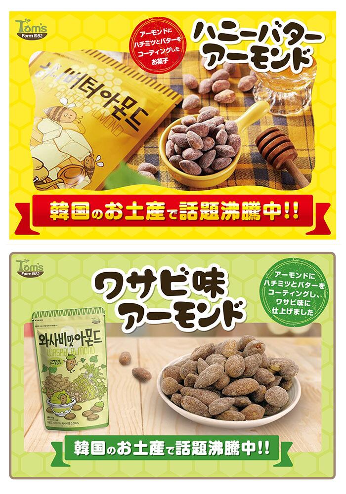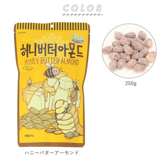 ・韓国土産で大人気!アメリカ産Tom's Farm社の最高級アーモンドを使用し、ハチミツとバターを贅沢に使ったアーモンドハニーバターシリーズ大袋が登場。