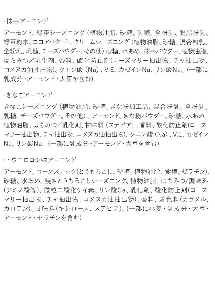 ・きなこアーモンドは和風テイストにハニーバターアーモンドを仕上げました。