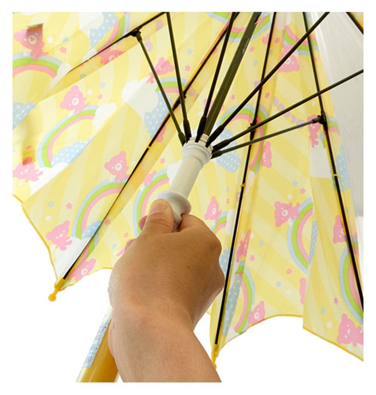 一部透明窓付きで周囲を確認しやすい傘、グラスファイバー骨を使って折れにくく、安全手開きのキッズ長傘45cmです。手開きなので手を挟みにくく、窓付きなので傘をさしているときに車など確認出来るタイプ。骨には耐久性の高いグラスファイバーが贅沢に使われている長傘です。