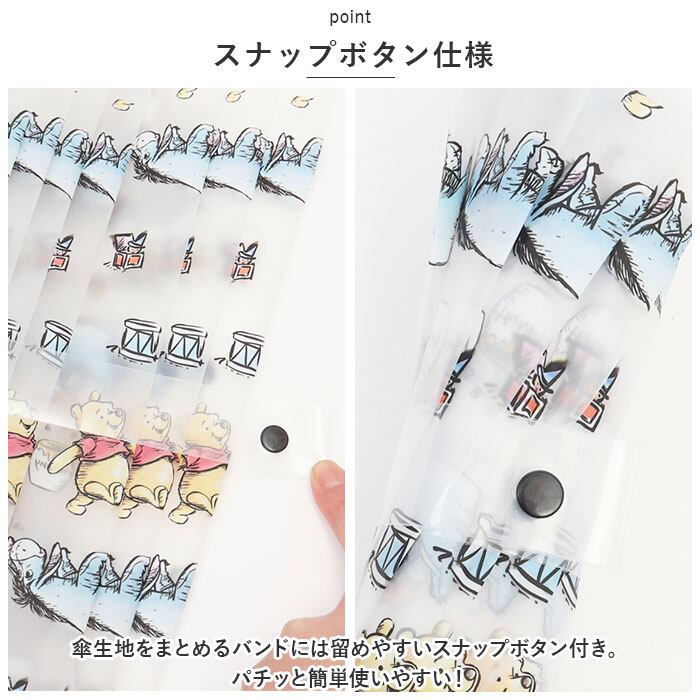 ・傘生地をまとめるバンドには留めやすいスナップボタン付き。パチッと簡単使いやすい!
