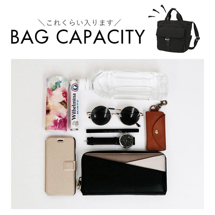 ・長財布や500mlペットボトルなどもすっぽり収まるのもポイント。