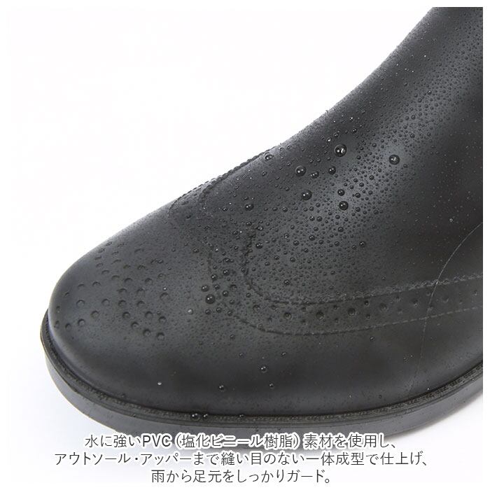 ・水に強いPVC(塩化ビニール樹脂)素材を使用し、アウトソール・アッパーまで縫い目のない一体成型で仕上げ、雨から足元をしっかりガード。