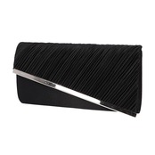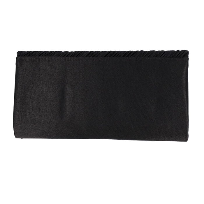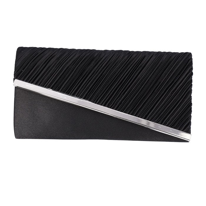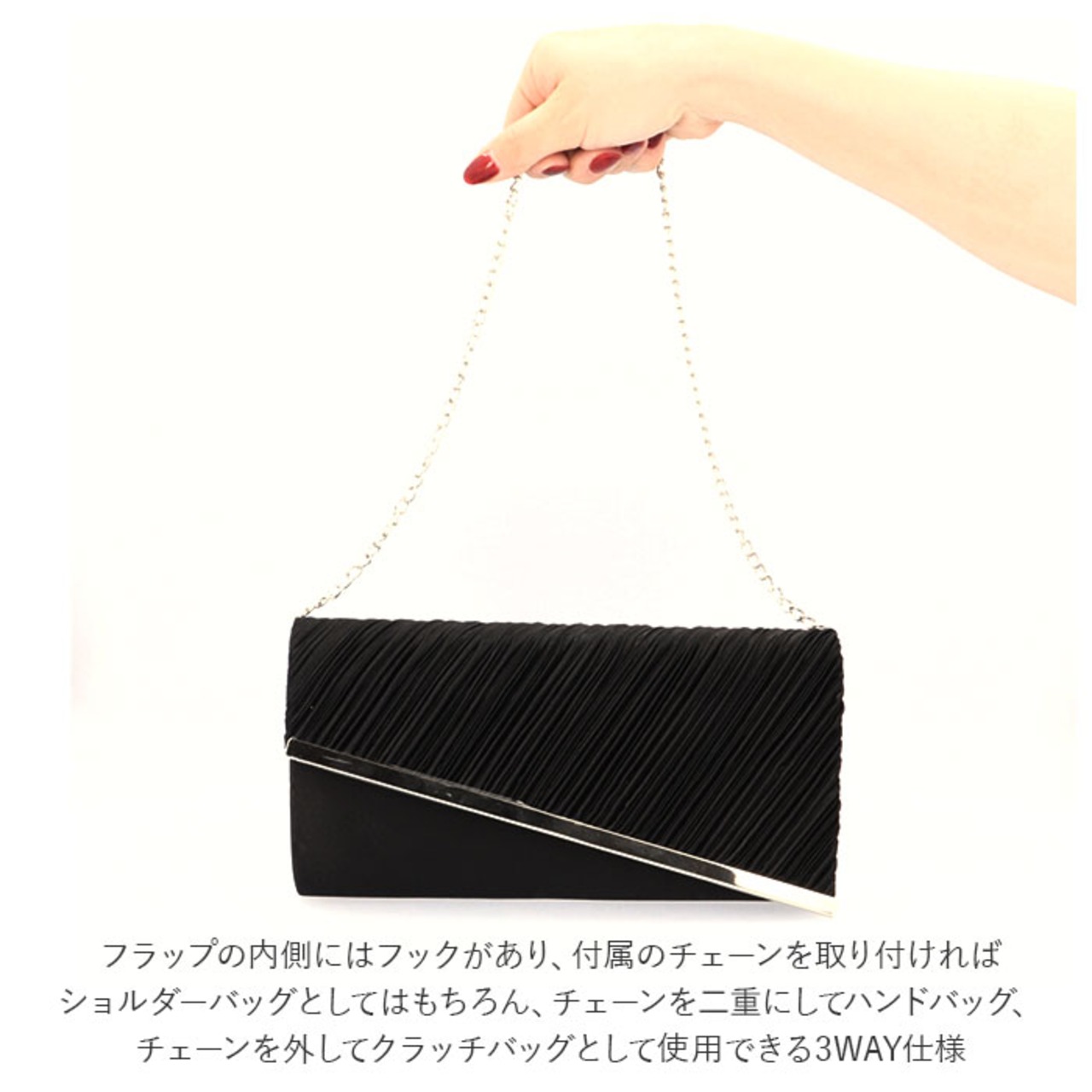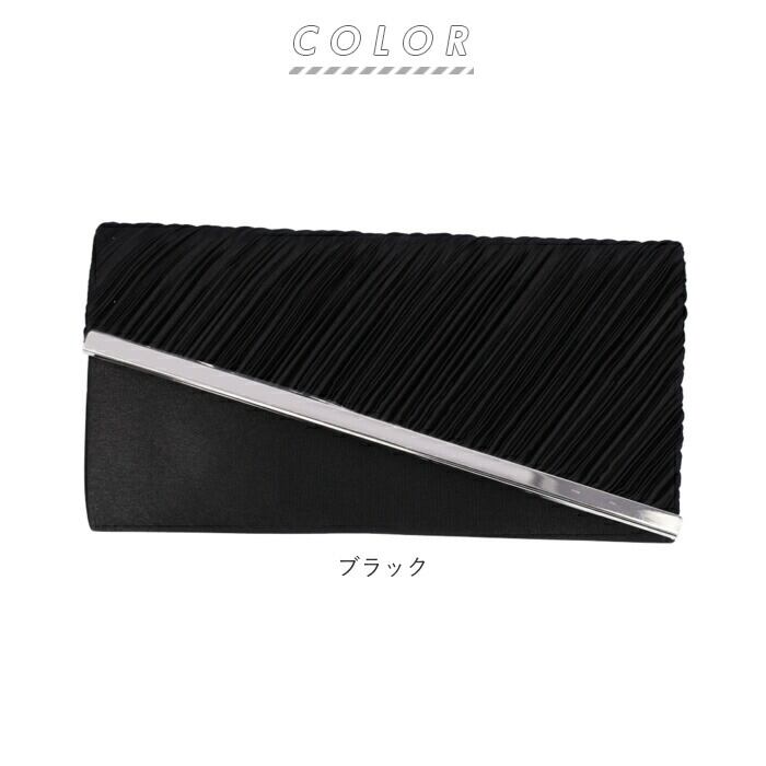 ・全体に上品な光沢感のあるサテン生地を使用。フラップ部分にプリーツ加工を施しエッジを利かせたデザインに。