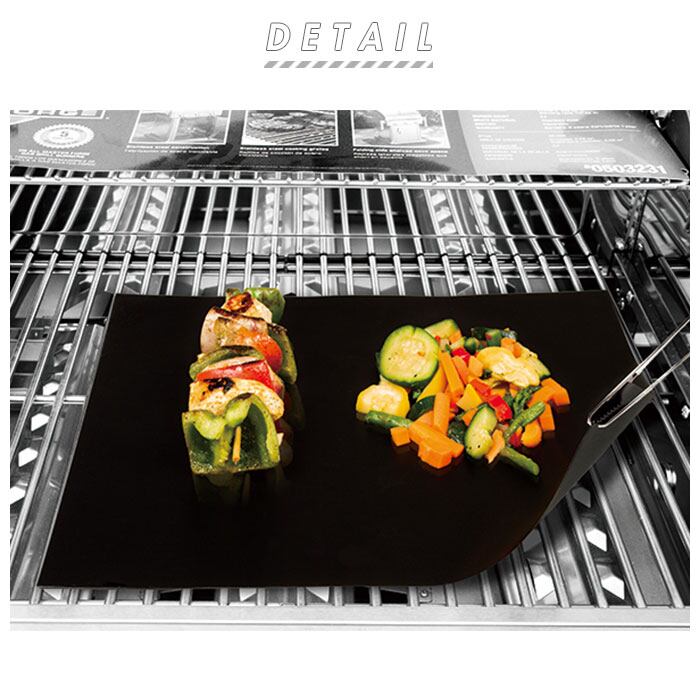 ・素材に耐火性に優れたグラスファイバーを使用しているので、網や鉄板の上に直接敷いて使えて、調理器具を焦げ付きから守ってくれる。しかも直火だってOK!